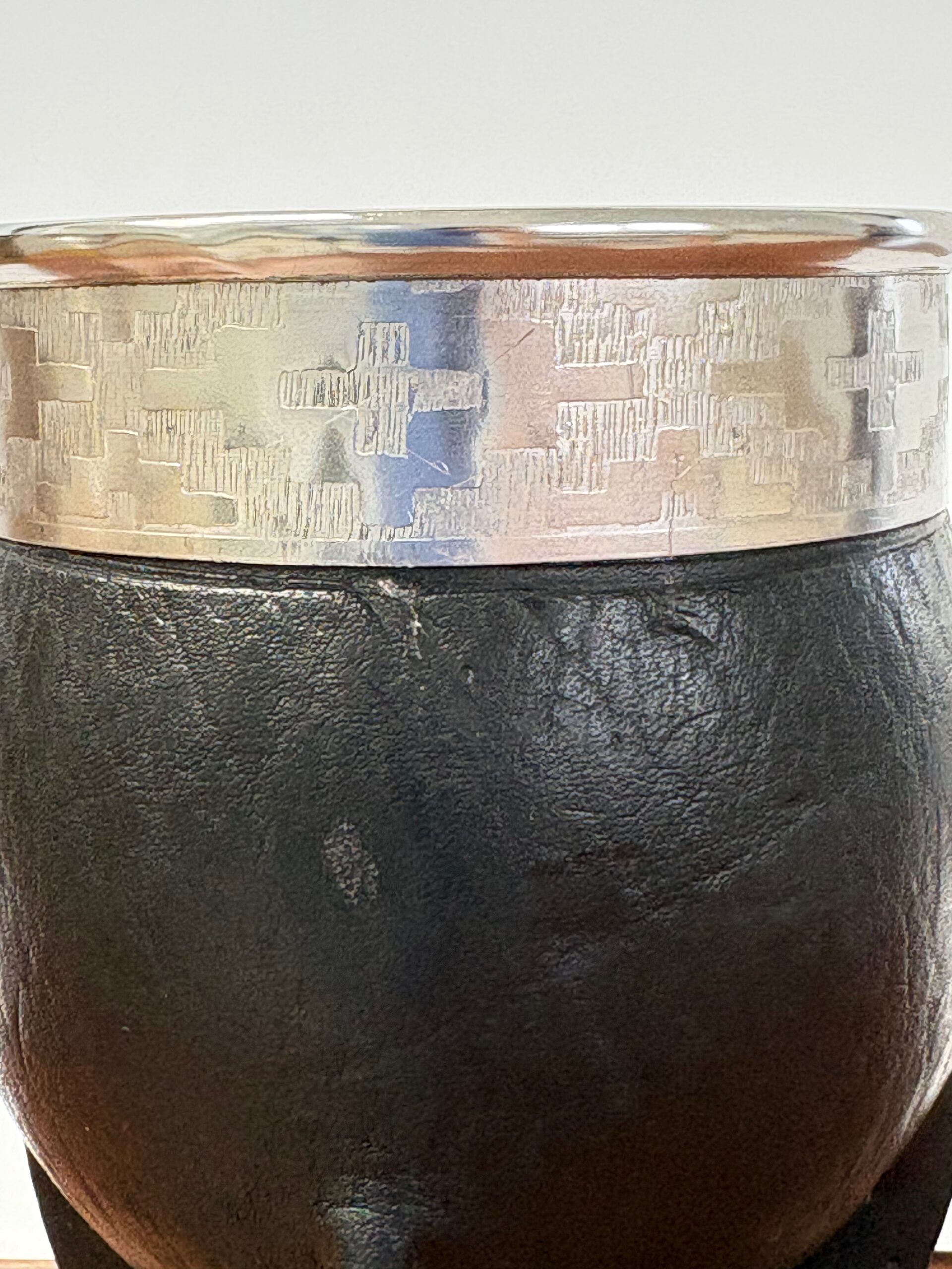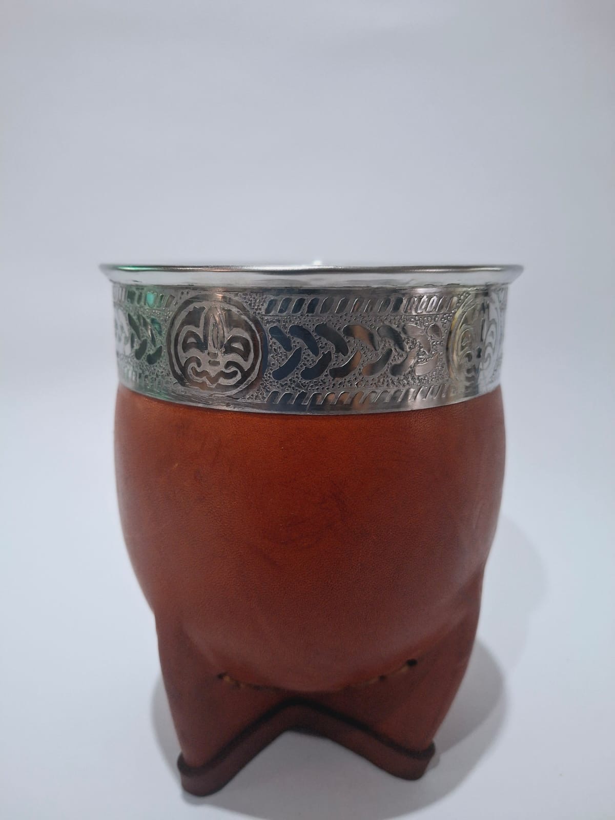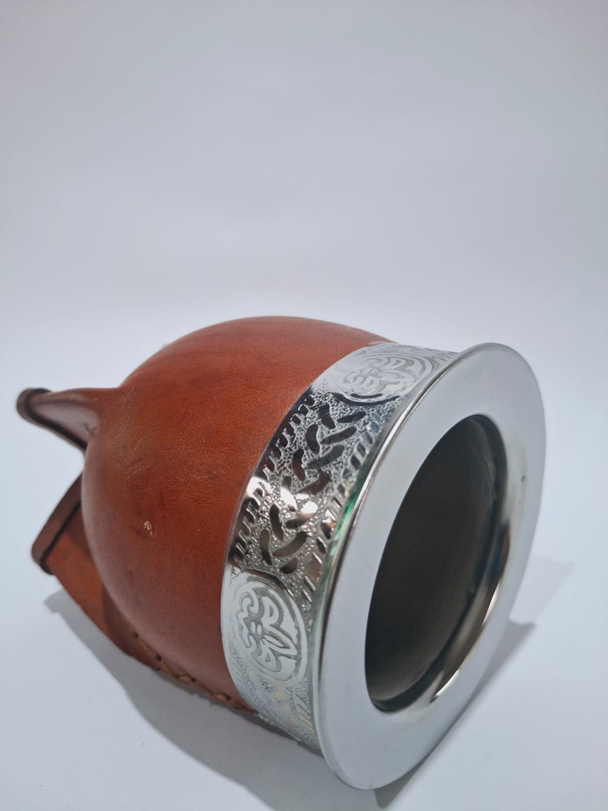 Mate imperial con interior de acero tipo térmico, forrado en cuero y fleje cincelado.