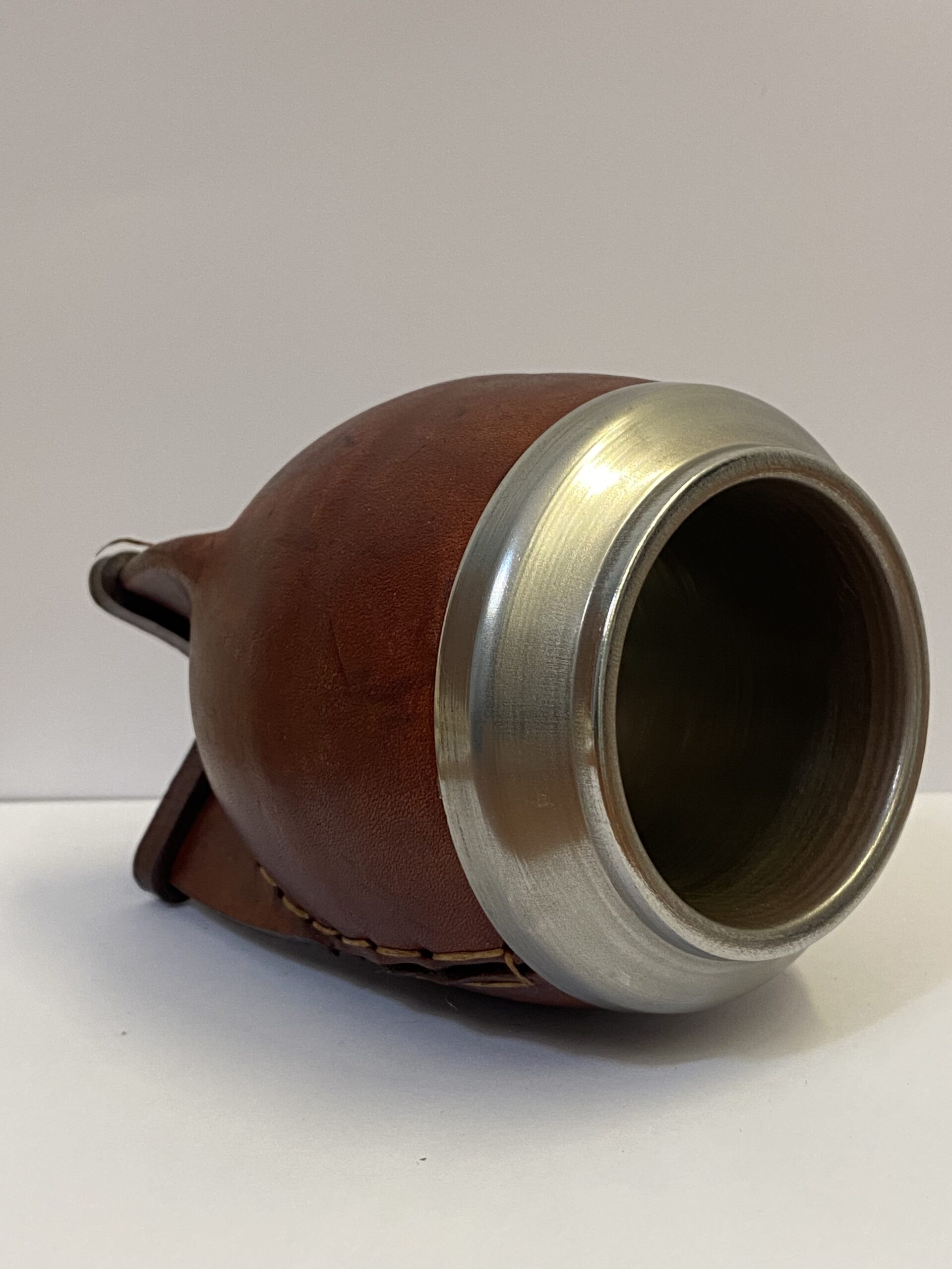 Mate torpedo cuero, con un interior y virola de acero inoxidable.