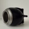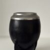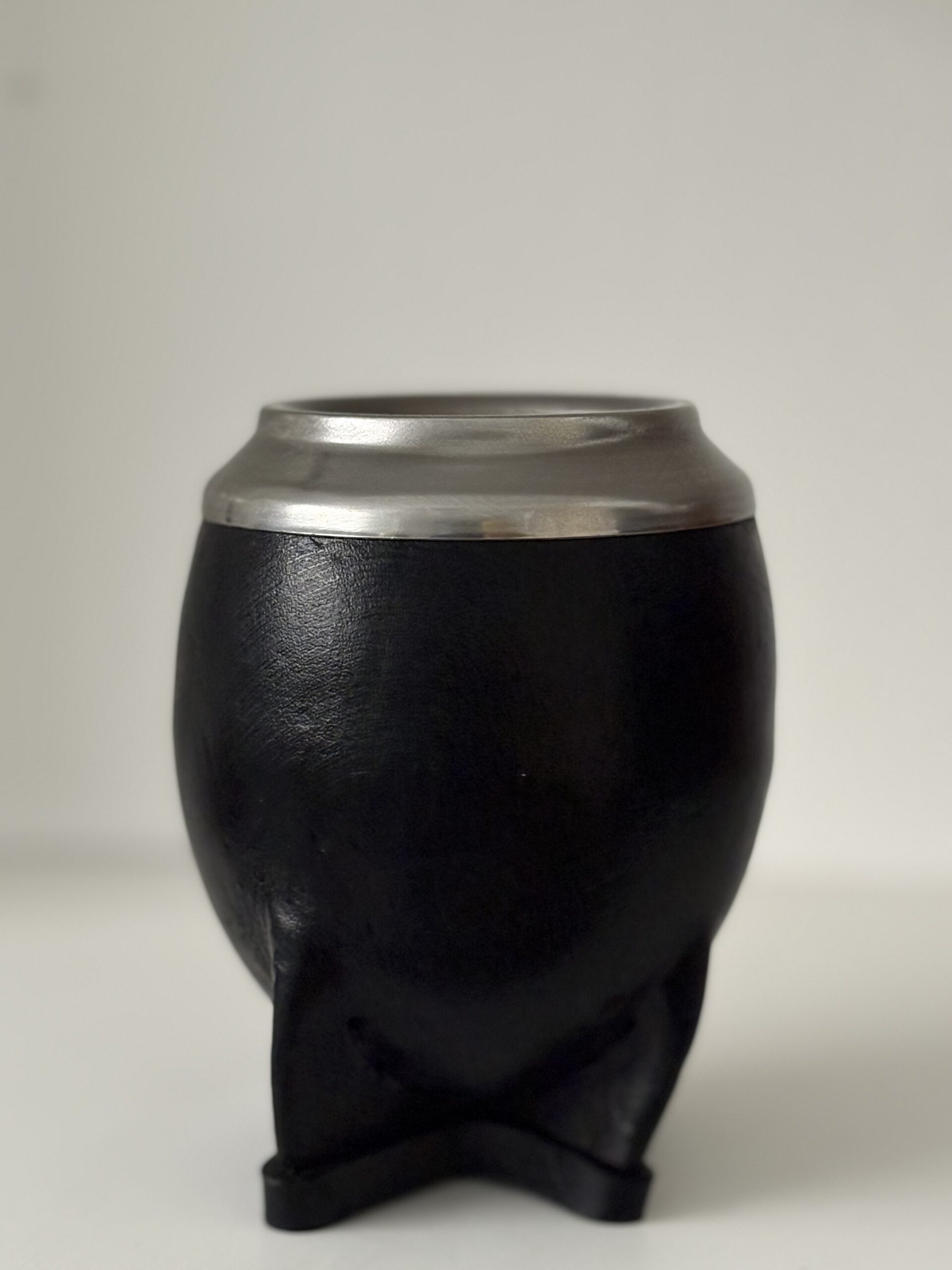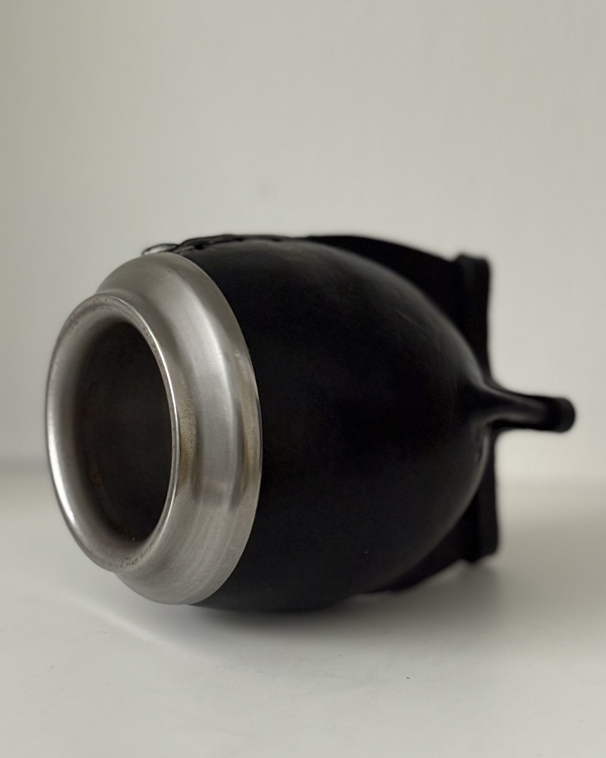 Mate torpedo forrado en cuero color negro, con un interior y virola de acero inoxidable.