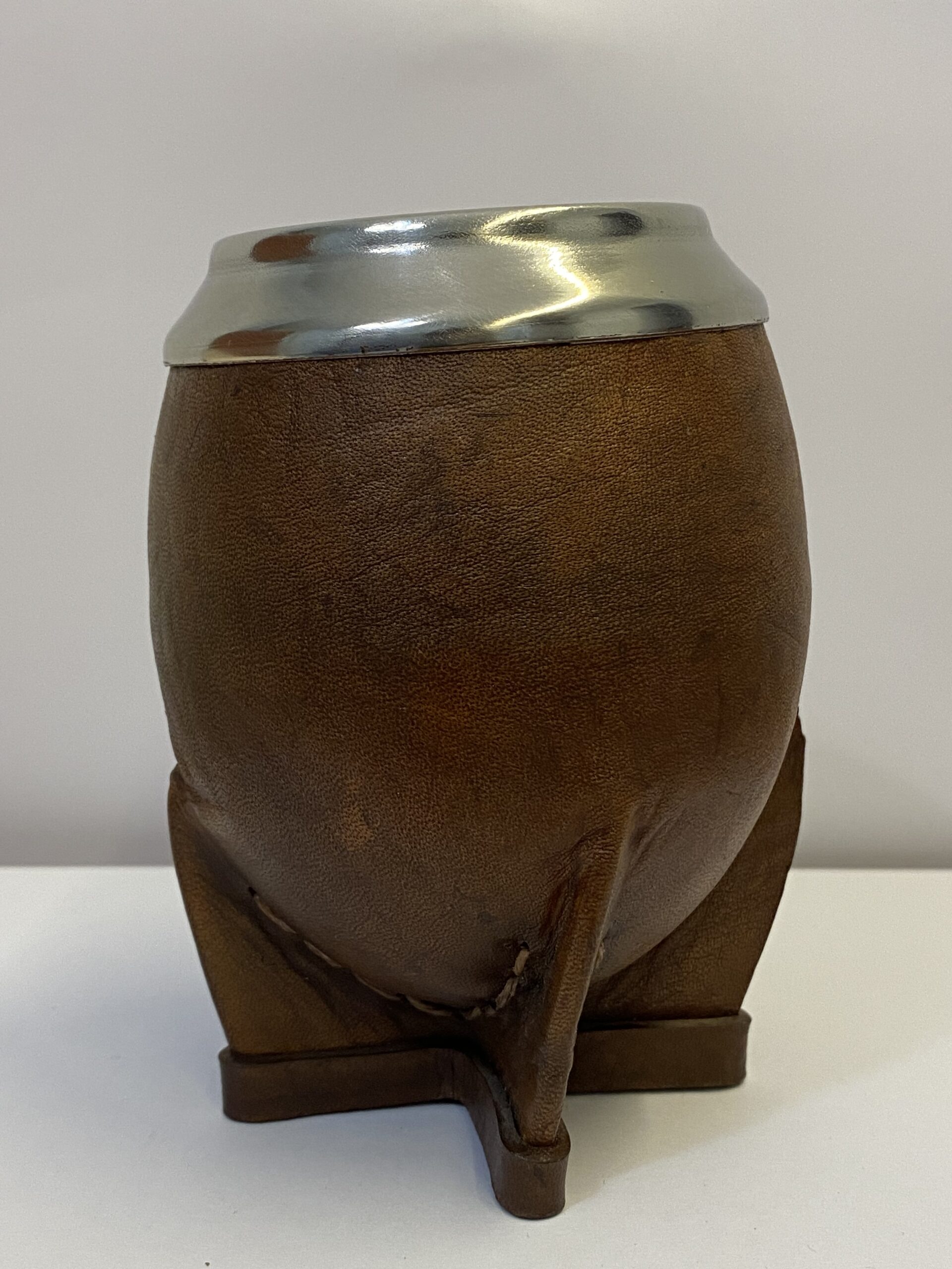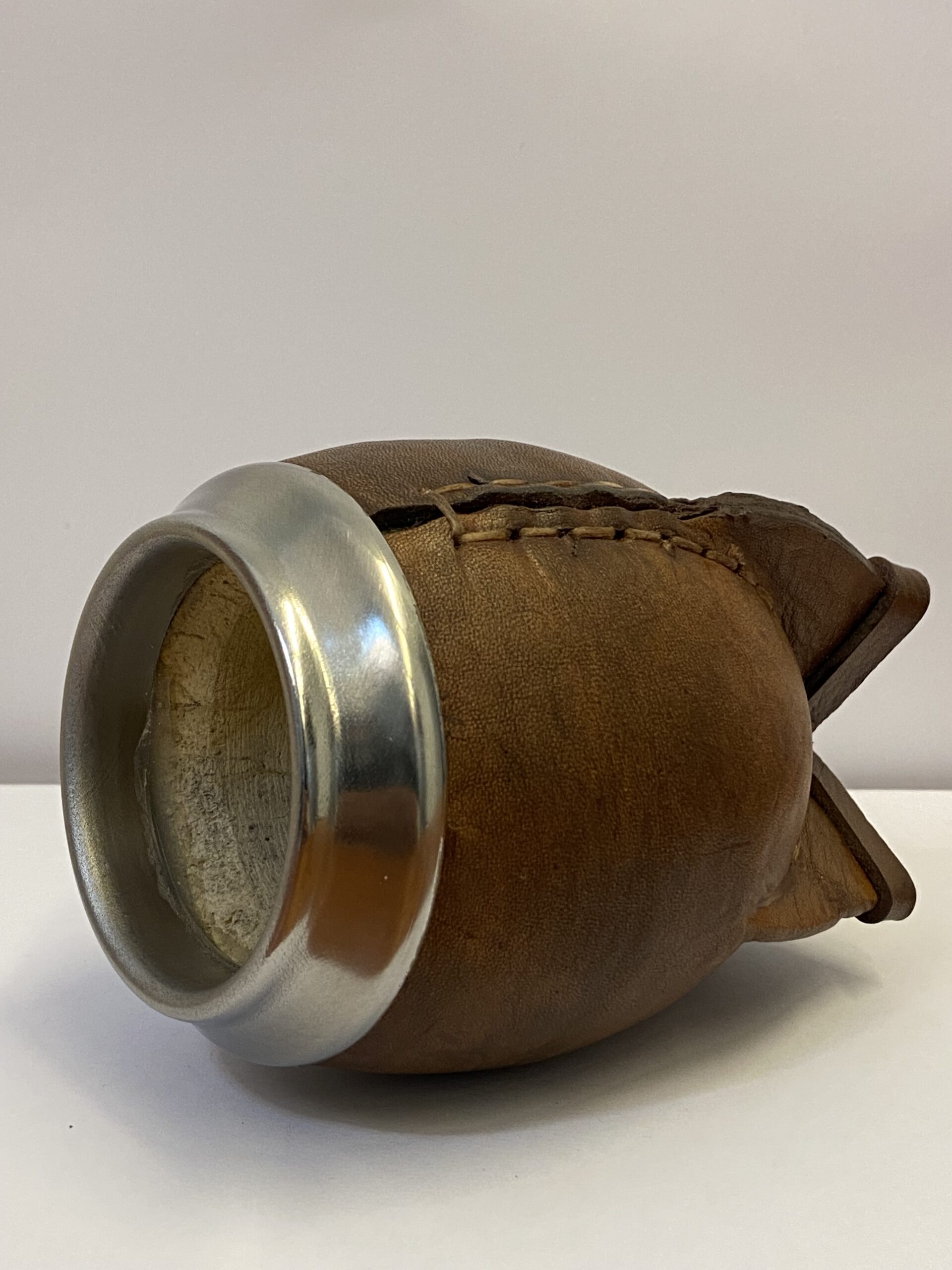 Mate torpedo con un interior de calabaza forrado en cuero y virola de acero inoxidable.