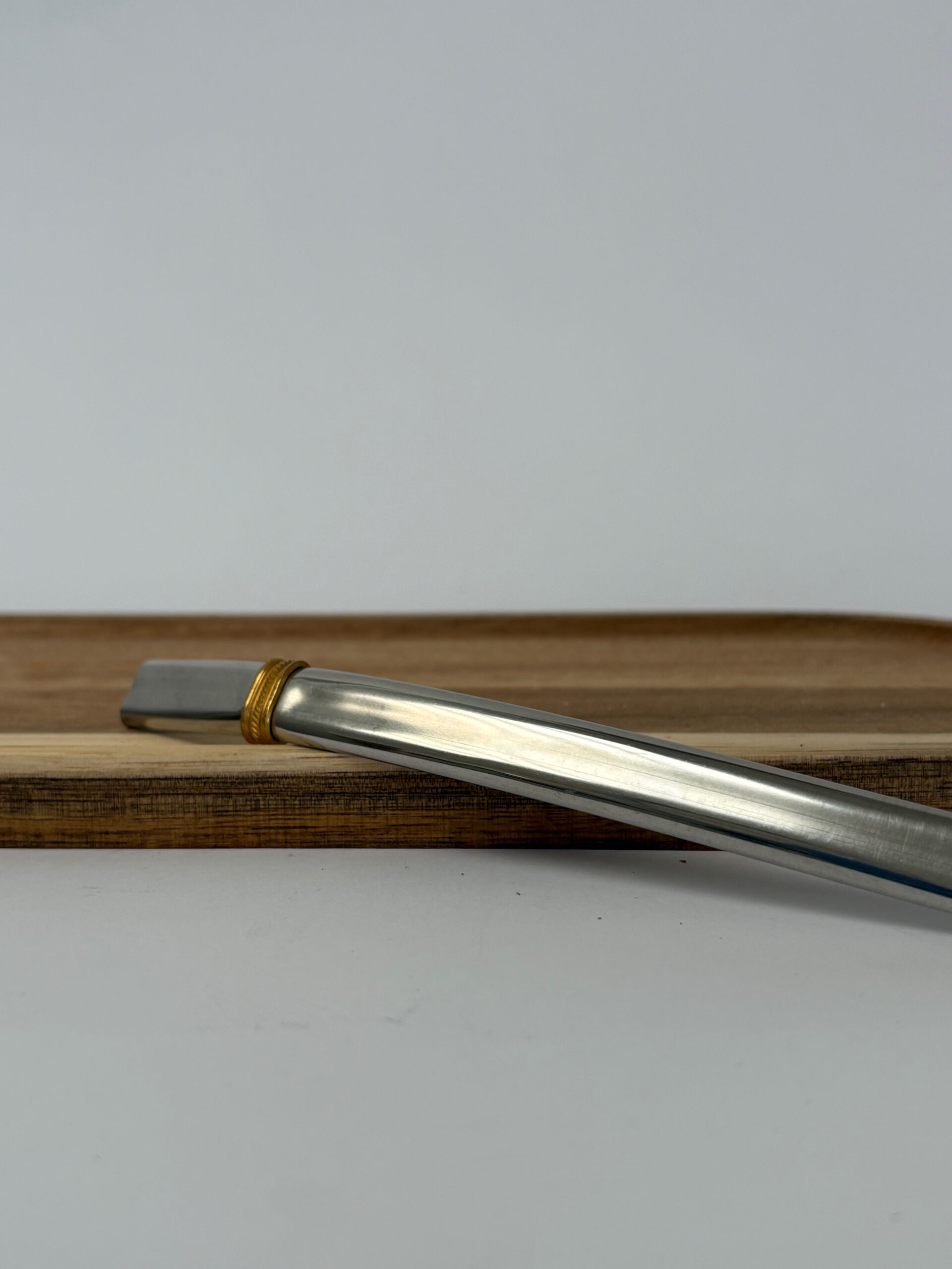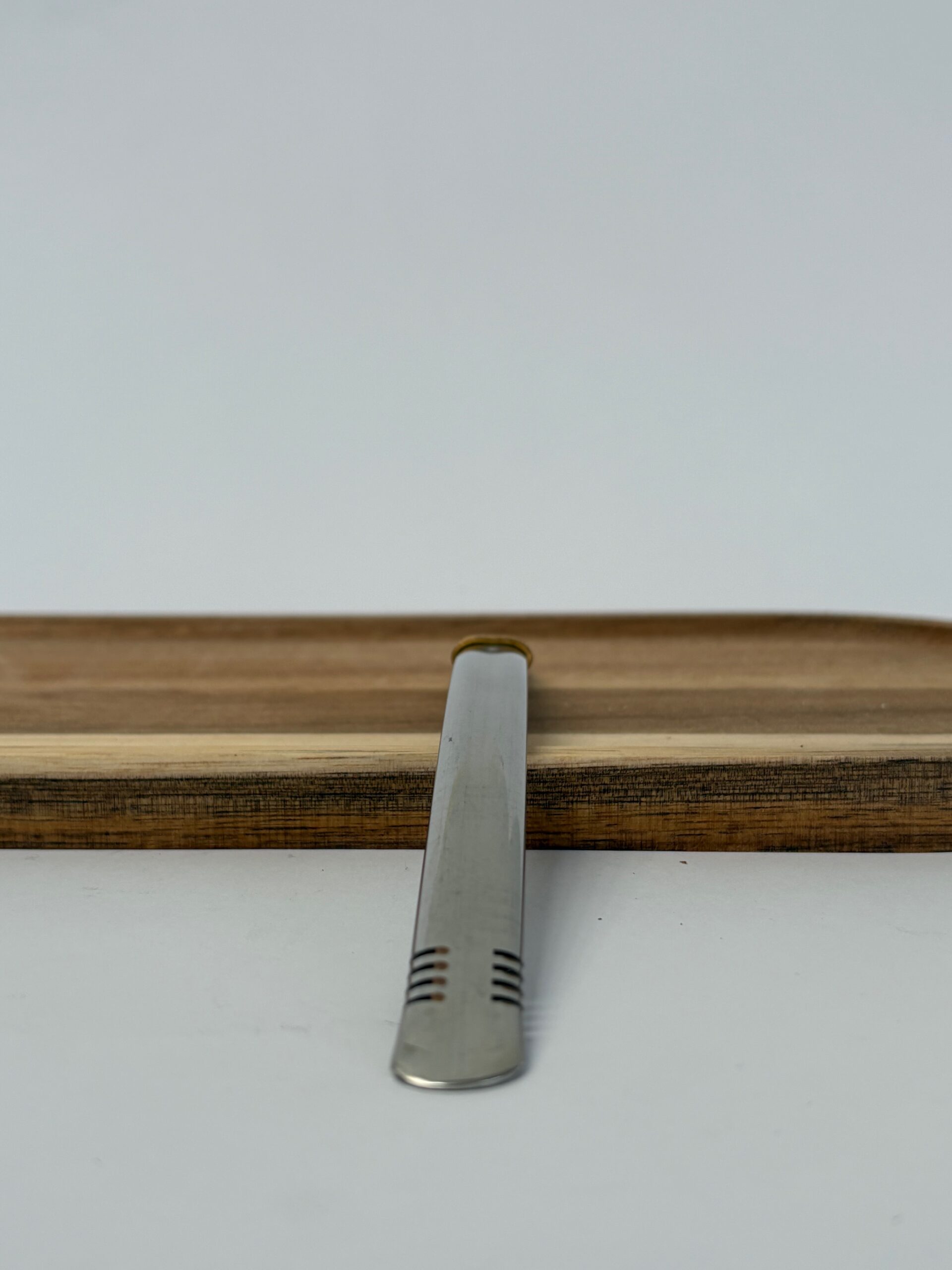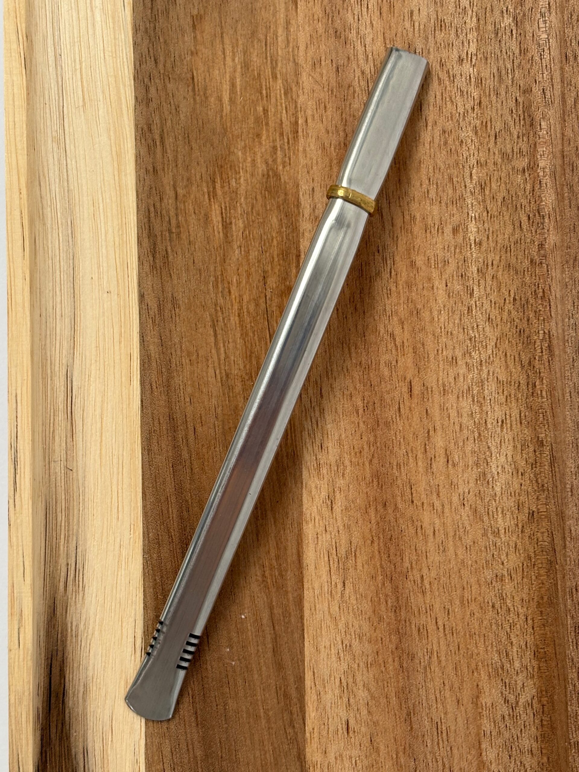 Pala ancha 100% acero inoxidable, dije de bronce y filtro chato.