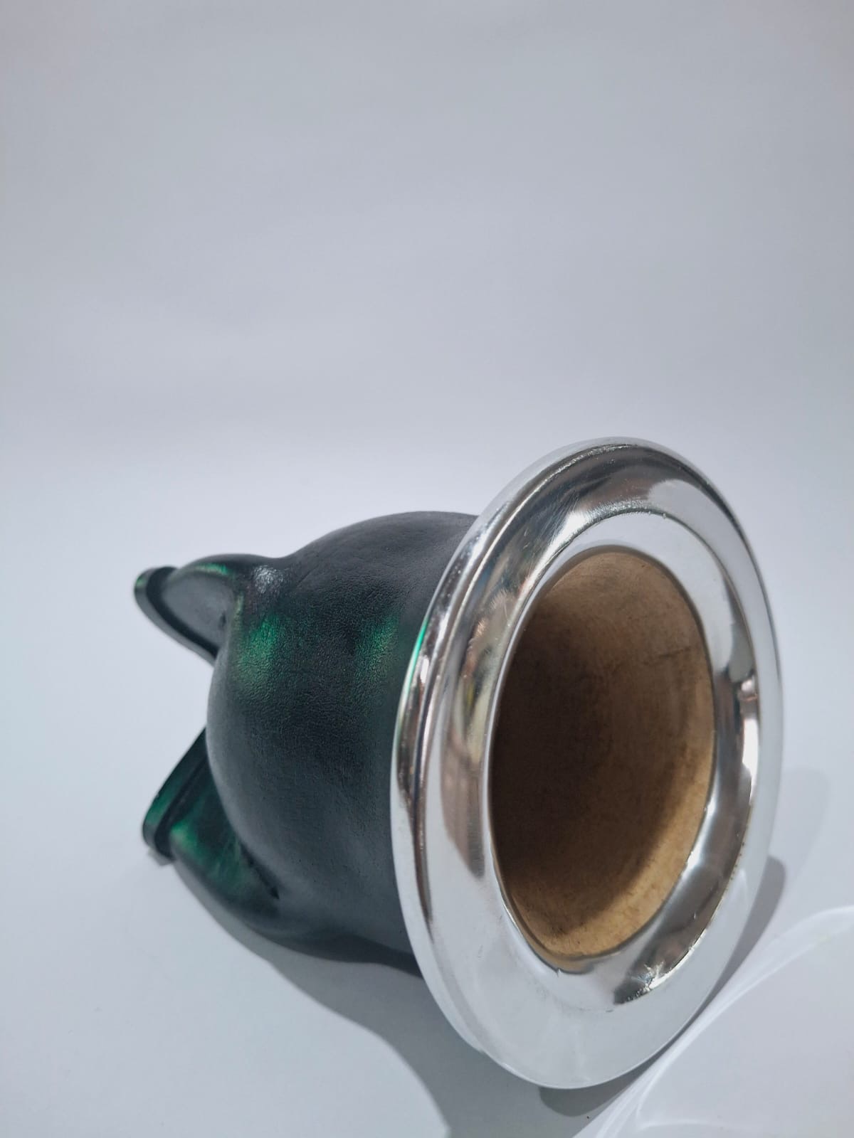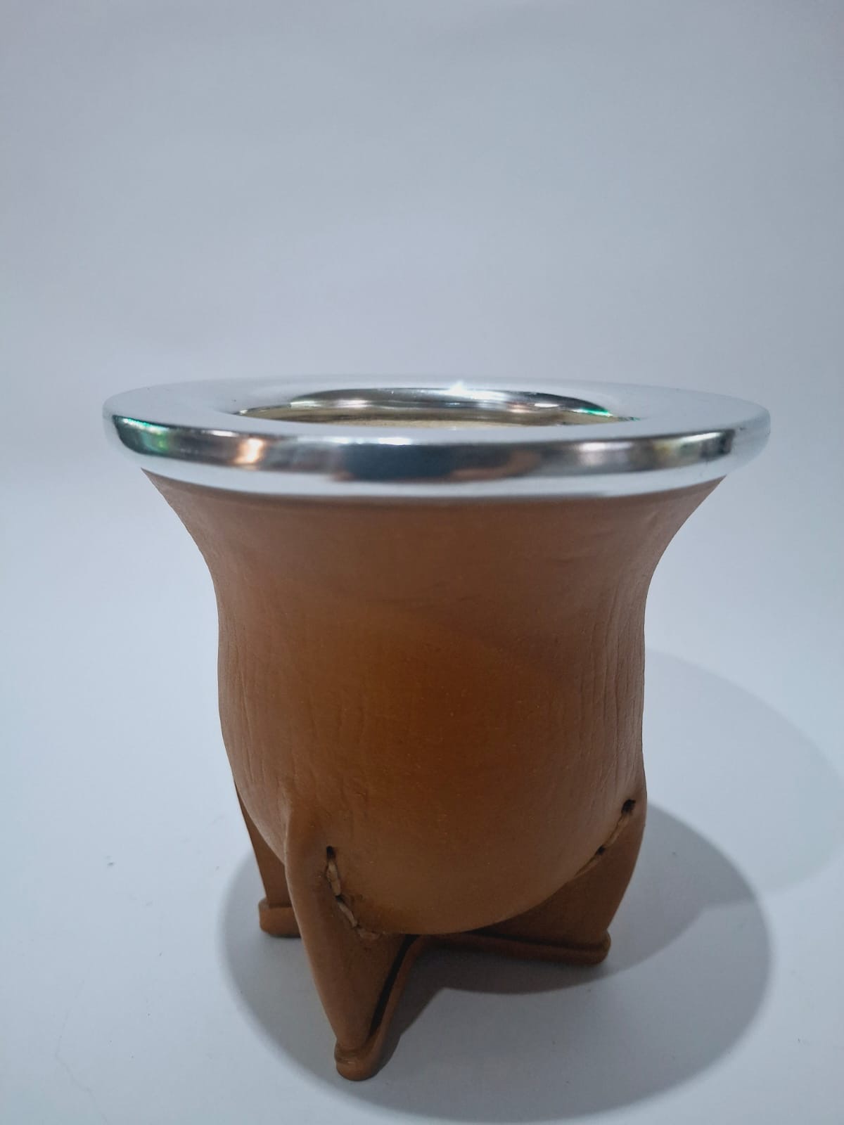 Mate camionero interior de calabaza, forrado en cuero y con virola de metal.