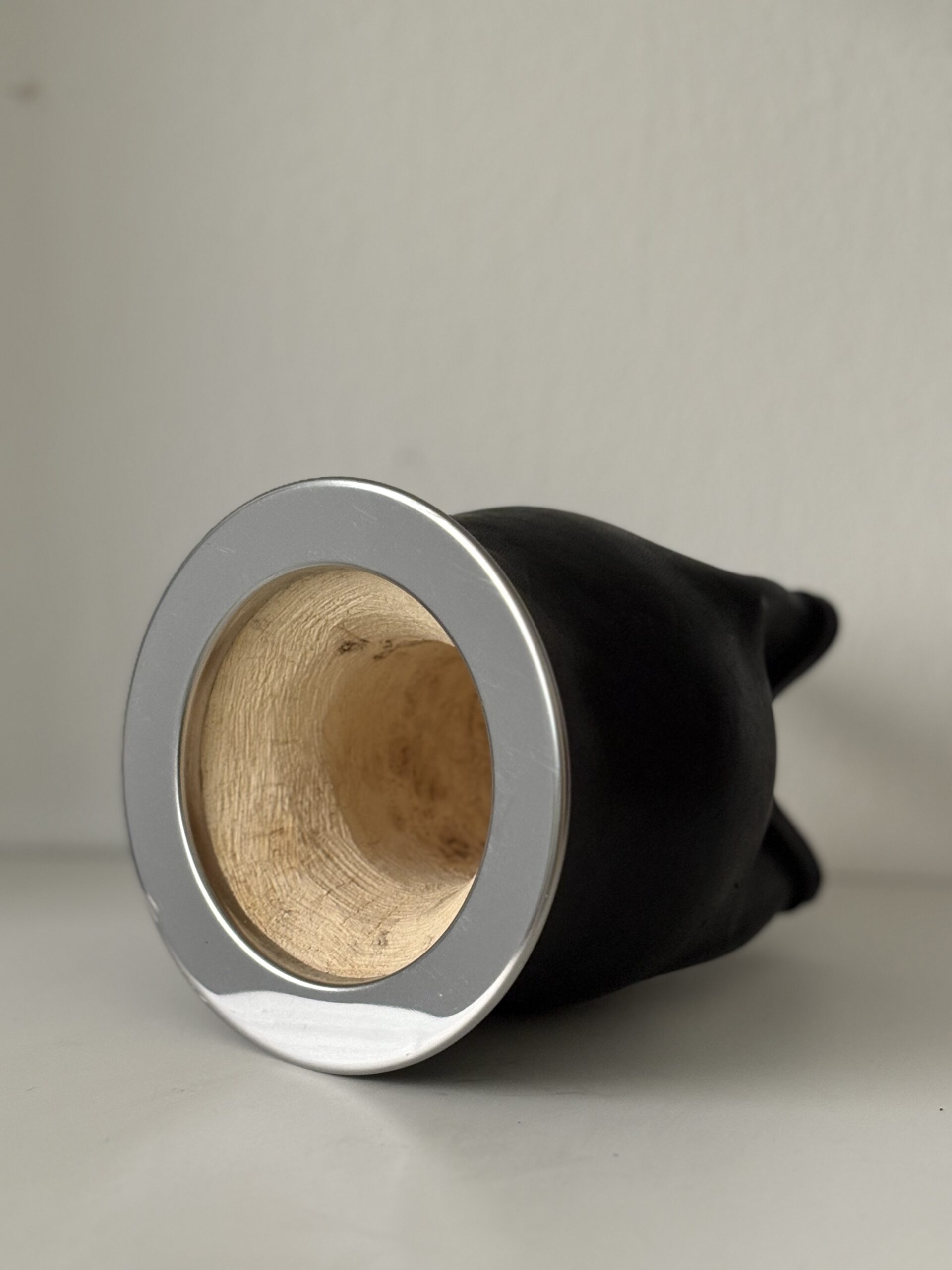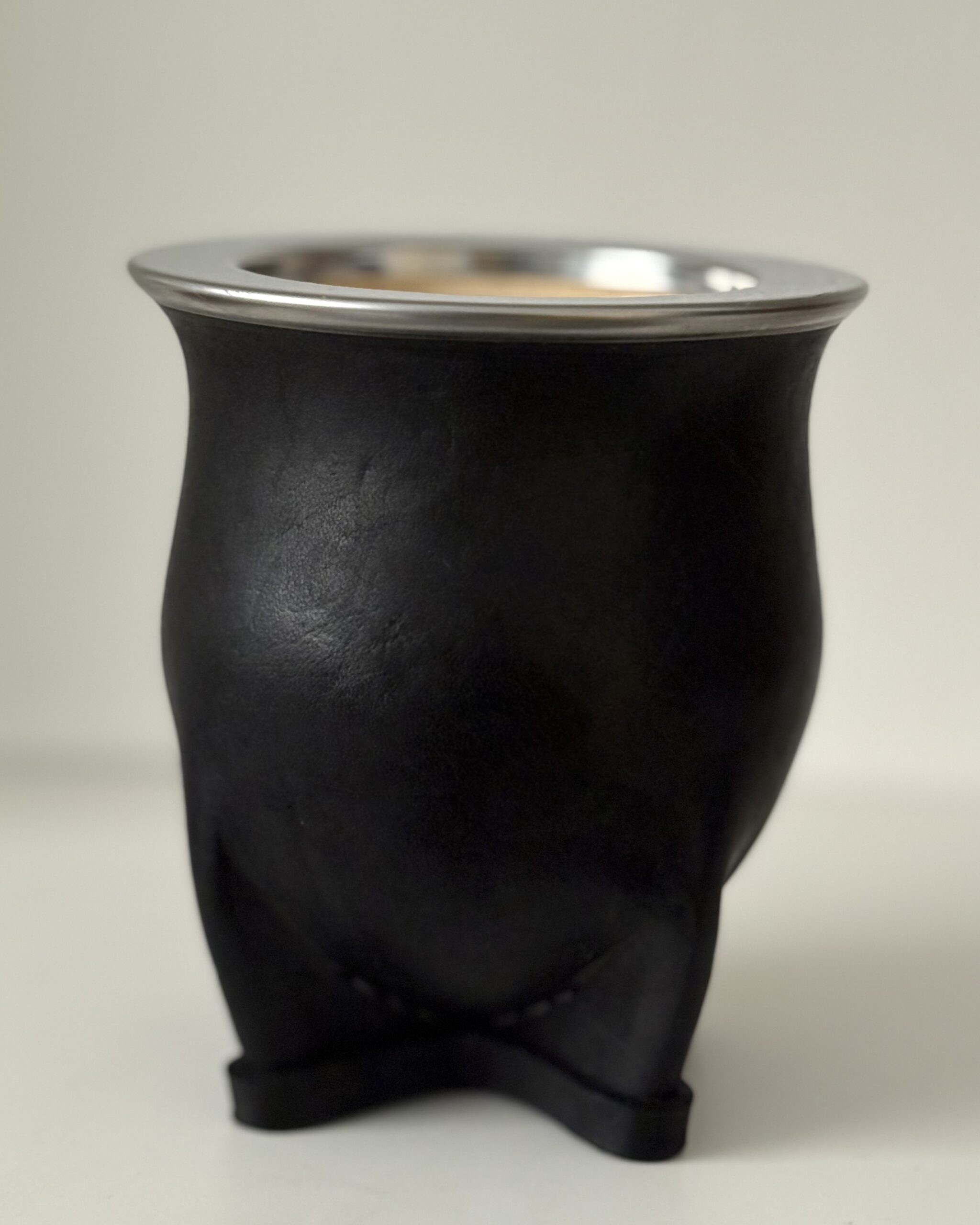 Mate camionero con un interior de calabaza forrada en cuero negro y con una virola de acero inoxidable.