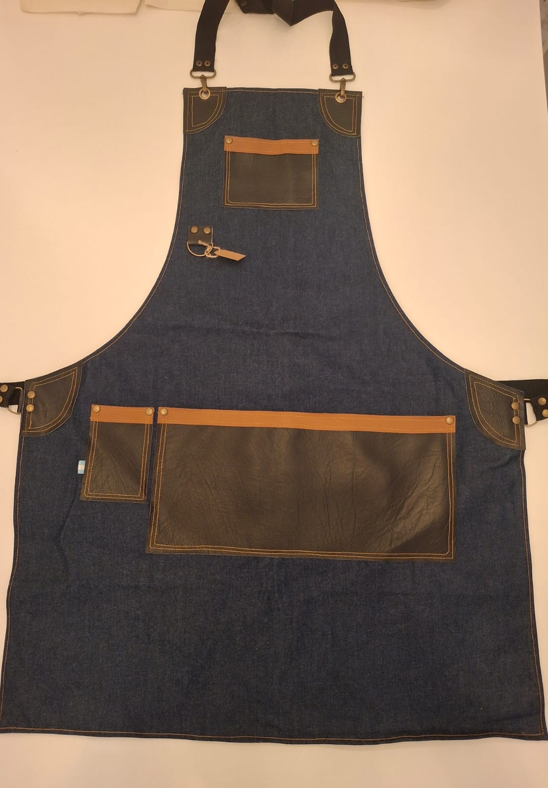 Delantal jeans con apliques de cuerina combinado ideal para un buen asado